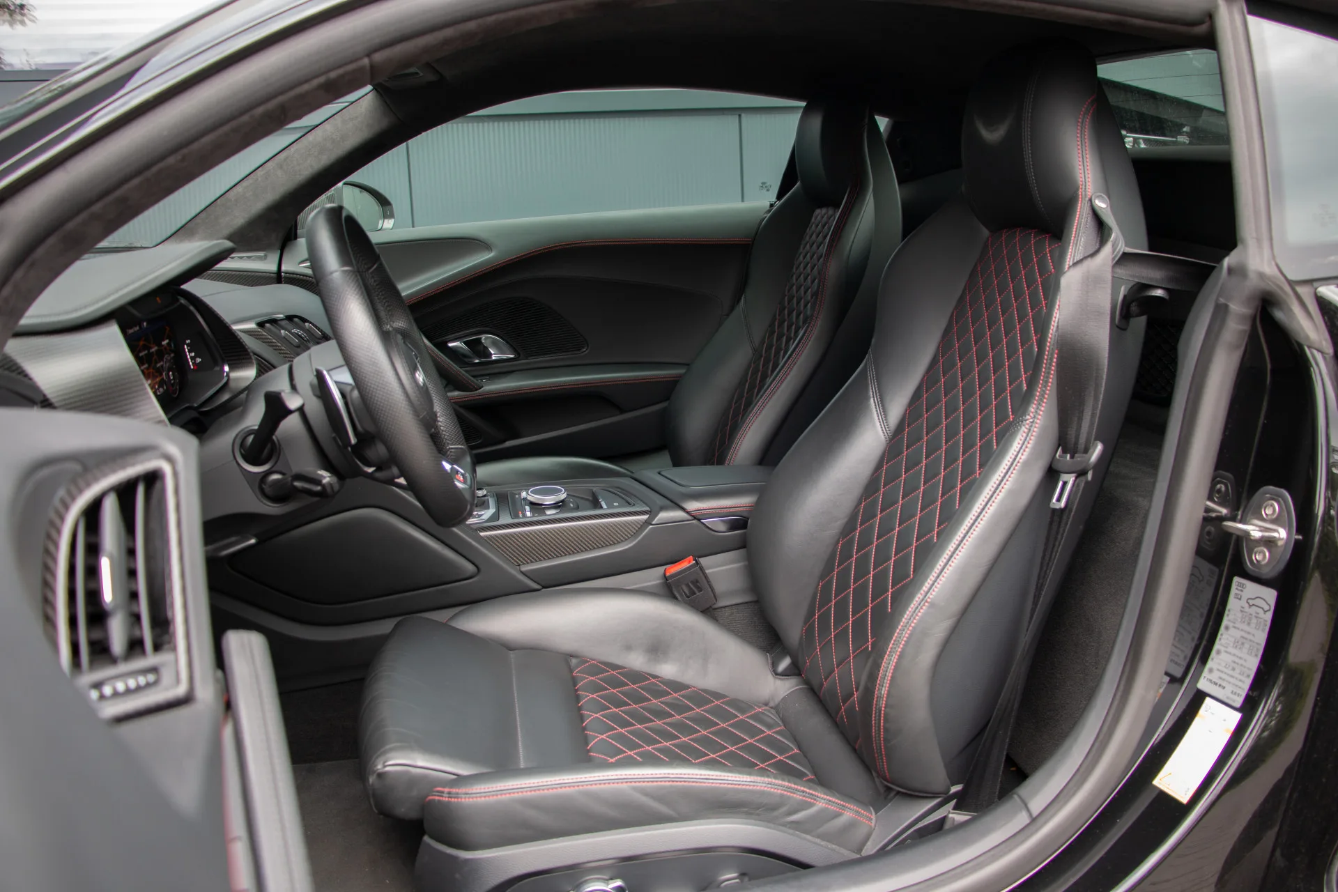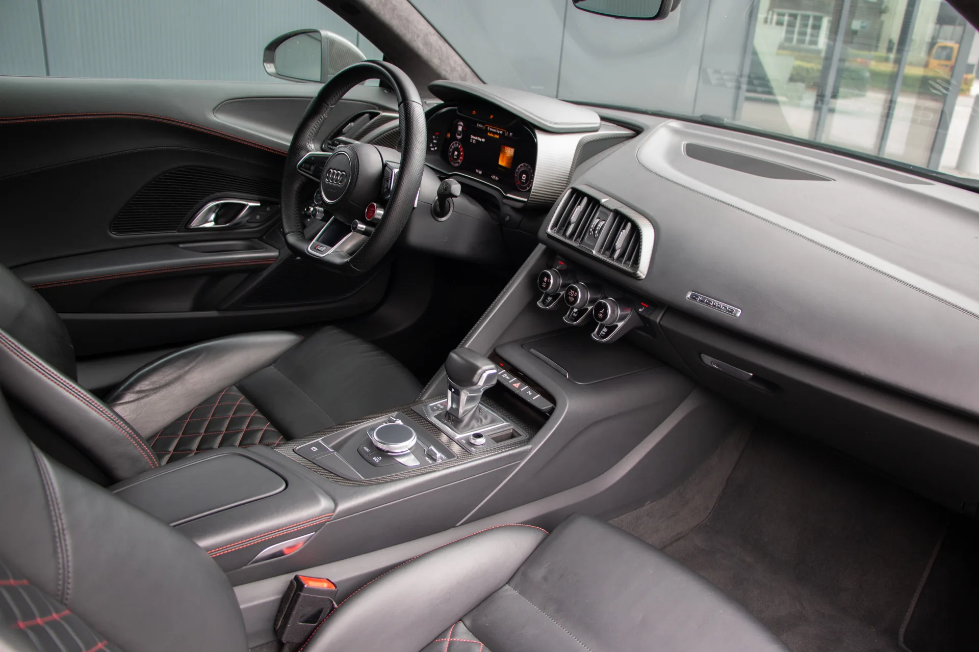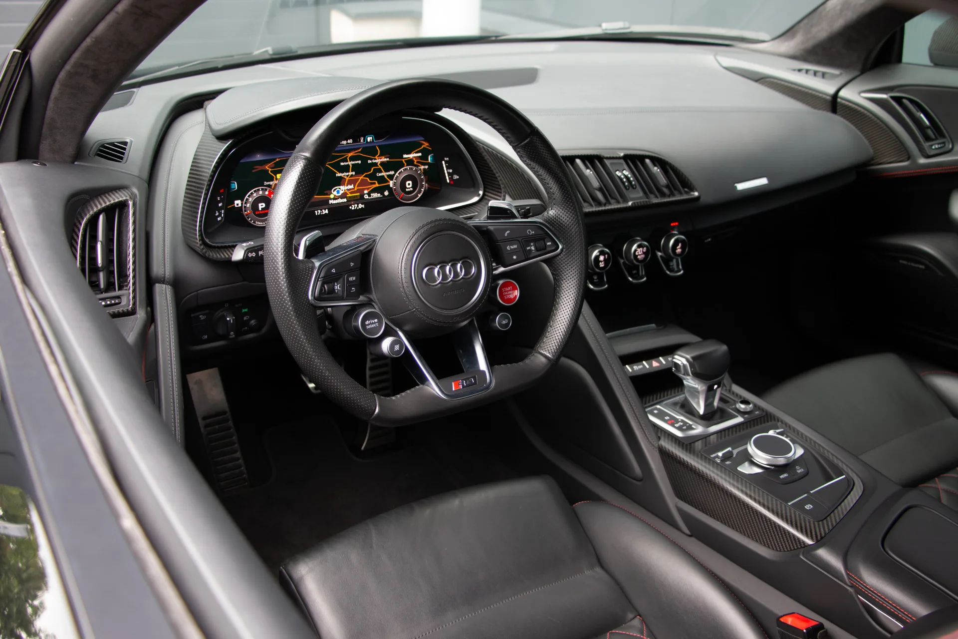 De afwerking is zoals u mag verwachten van een topklasse sportauto: carbon exterieuraccenten, een alcantara hemelbekleding, met leder beklede sportstoelen in Valcona met contrasterend stiksel, en het indrukwekkende Audi Virtual Cockpit voor een digitale en overzichtelijke rijervaring. Verder is deze R8 uitgerust met het Bang & Olufsen geluidssysteem voor een ongeëvenaarde audiobeleving, stoelverwarming, een achteruitrijcamera, 20 inch lichtmetalen velgen en parkeersensoren rondom. Elk detail is met zorg samengesteld voor de echte liefhebber.