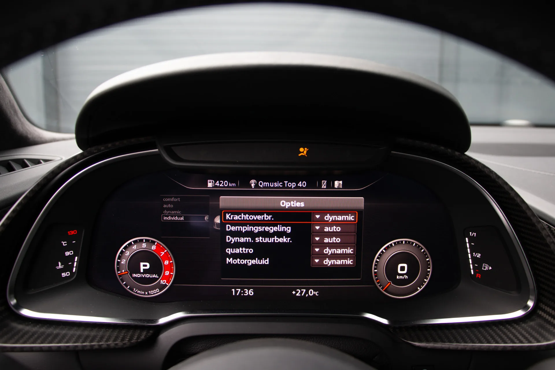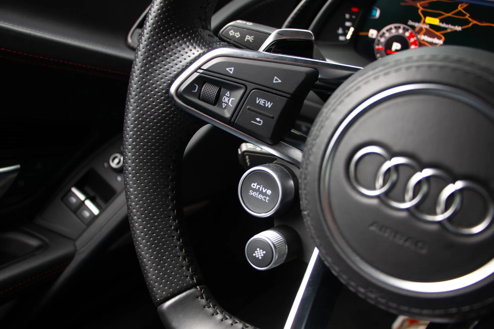 U geniet van keramische remmen voor optimale remprestaties, zelfs bij intensief gebruik. De sportuitlaat zorgt voor een onmiskenbaar V10-geluid dat desgewenst opwindend of ingetogen kan klinken, afhankelijk van de rijmodus die u kiest via Audi Drive Select. Het onderstel is voorzien van Magnetic Ride, een adaptief systeem dat zich moeiteloos aanpast aan elke situatie – van comfortabel cruisen tot dynamisch bochtenwerk.