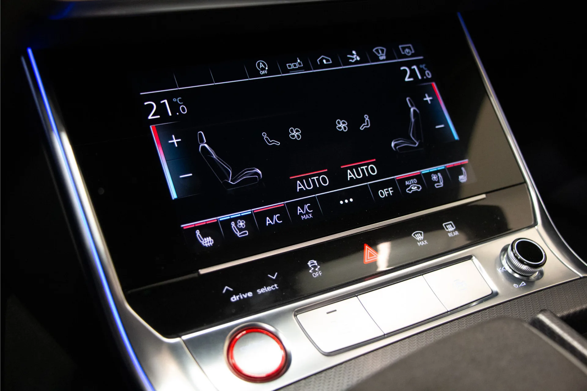 In het interieur staat luxe centraal. Zo is de auto uitgerust met het hoogwaardige Bang & Olufsen Advanced audiosysteem wat garant staat voor een uitzonderlijke geluidskwaliteit. Het Head-Up display projecteert belangrijke rijinformatie direct in het zicht van de bestuurder. Voor extra comfort zijn de stoelen voorzien van ventilatie en sluiten de portieren dankzij Soft Close altijd automatisch en geruisloos.