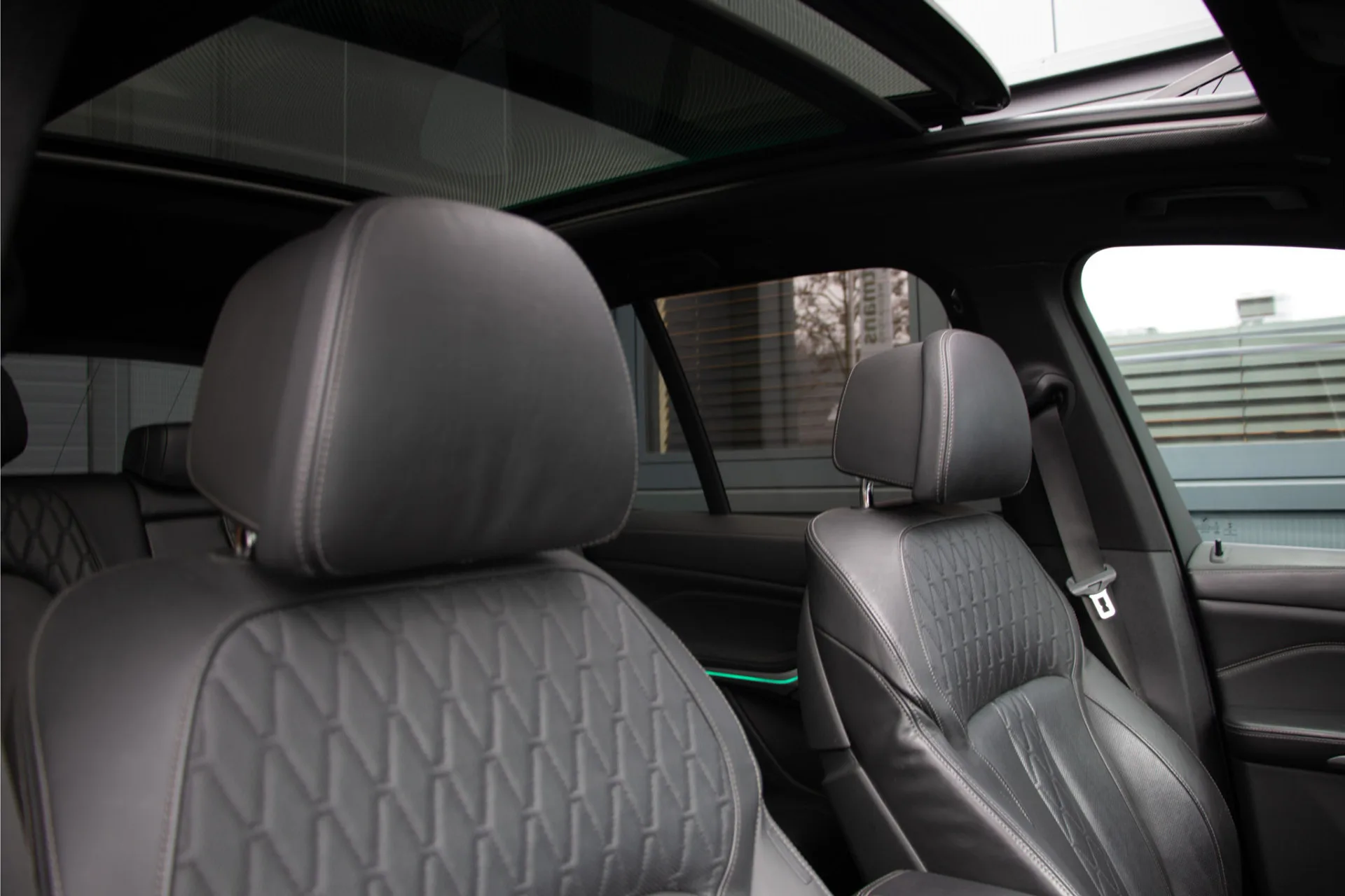 Het interieur is uitgevoerd met comfortstoelen voorzien van massage-, ventilatie- en geheugenfunctie, aangevuld met stoel- en stuurverwarming voor maximaal comfort in elk seizoen. Het panoramisch glazen dak met Skylounge-verlichting zorgt voor een lichte en luxe ambiance. Het lederen interieur met carbon accenten, het kristallen glaspook en het uitgebreide lederpakket onderstrepen het exclusieve karakter. Met het Harman Kardon audiosysteem geniet u van een hoogwaardige geluidskwaliteit en dankzij Apple CarPlay en Android Auto blijft u altijd verbonden.