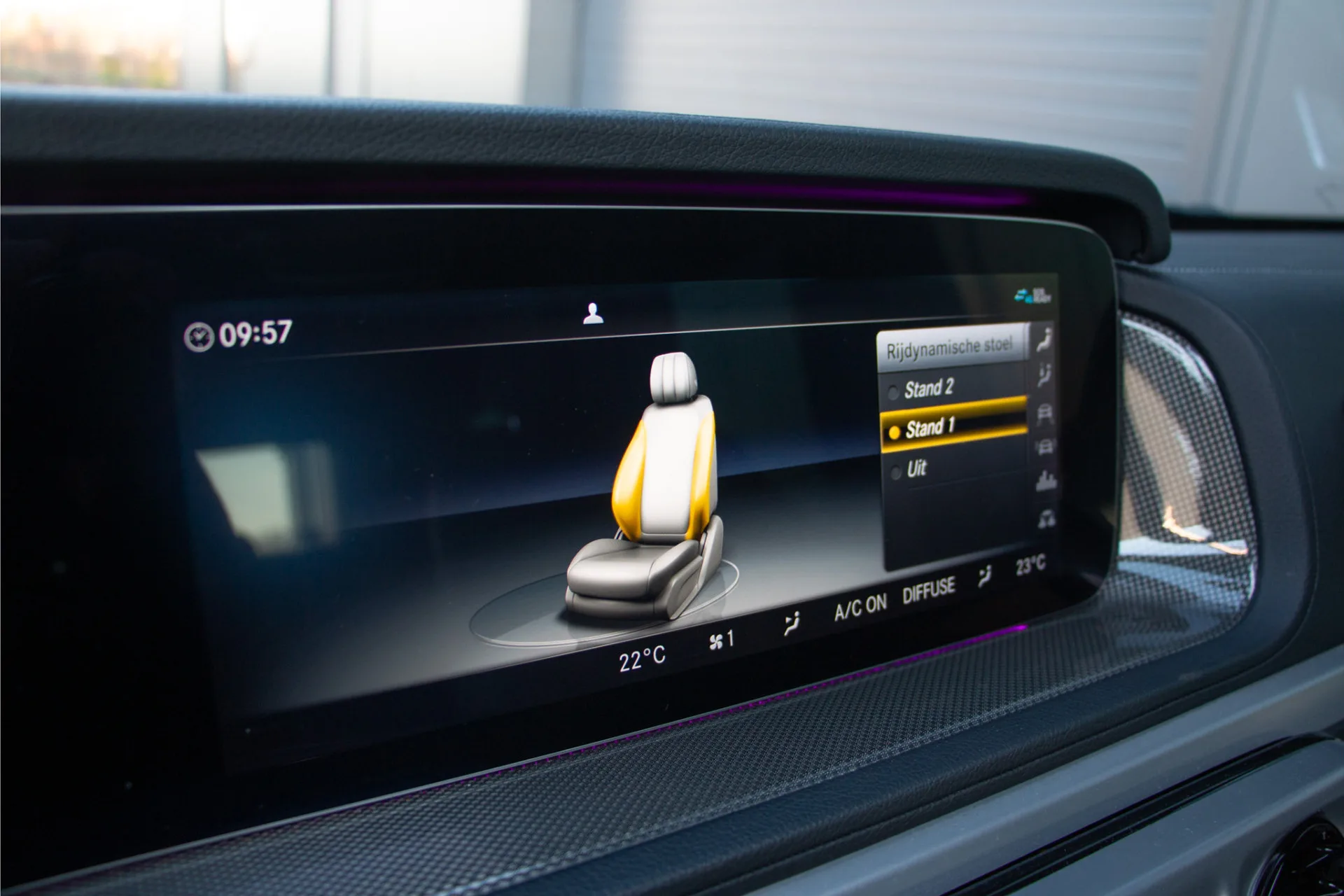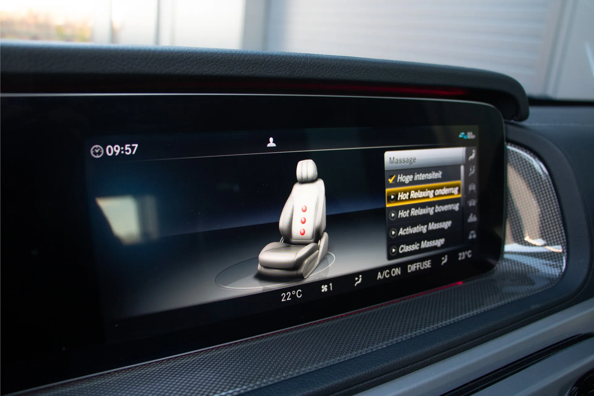 Het interieur is een toonbeeld van luxe en comfort. De met carbon afgewerkte details, sfeerverlichting en het hoogwaardige Burmester 4D audiosysteem creëren een ambiance van topniveau. De stoelen bieden massage-, ventilatie- en verwarmingsfuncties, terwijl ook de achterbank is voorzien van verwarming, zodat iedere inzittende geniet van maximaal comfort. Dankzij adaptieve cruise control, Lane Assist en Side Assist staat veiligheid altijd centraal, ondersteund door de 360 graden camera voor optimaal overzicht in elke situatie.